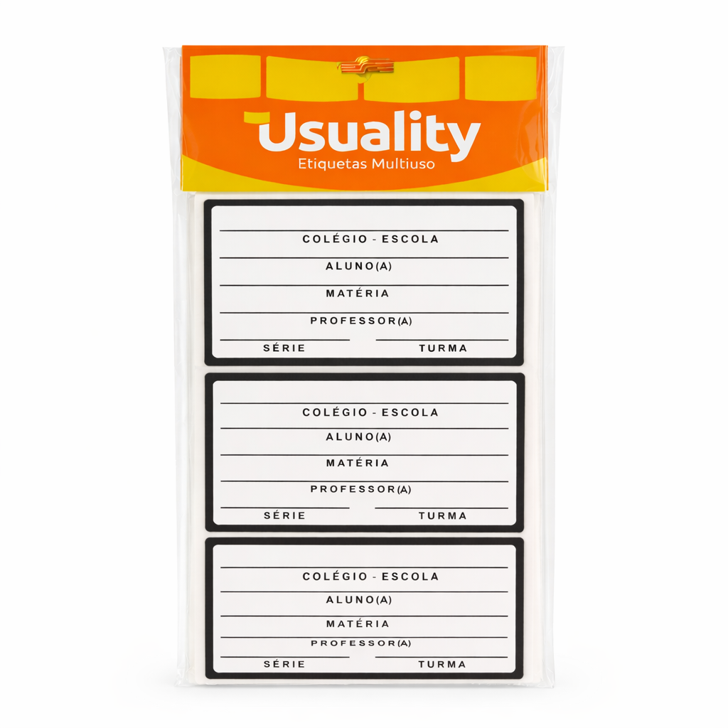 Com design clássico na cor preta, essa etiqueta é perfeita para cadernos, livros, pastas e demais itens escolares, ajudando na organização e evitando perdas.