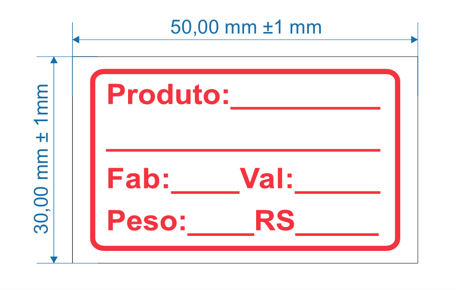 Dimensão da Etiqueta: 50 mm x 30 mm